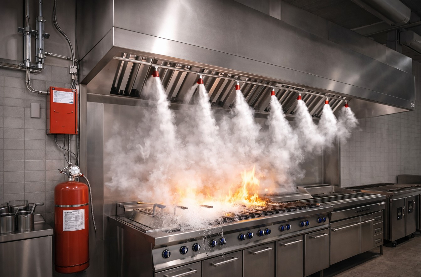 Davlumbaz yangın söndürme sistemleri, özellikle endüstriyel mutfaklarda ve restoranlarda ocak, fritöz ve pişirme ekipmanlarından kaynaklanabilecek yangınları hızlı şekilde söndürmek amacıyla kullanılan otomatik yangın söndürme sistemleridir. Bu sistemler davlumbaz içerisinde ve pişirme ekipmanlarının üzerinde bulunan nozullar aracılığıyla yangın algılandığında söndürme kimyasalını boşaltarak yangının büyümesini engeller. Davlumbaz yangın söndürme sistemlerinin periyodik kontrol ve bakımları zamanında yapılmadığı takdirde olası bir yangın anında sistemin doğru şekilde çalışıp çalışmadığı tespit edilemez.